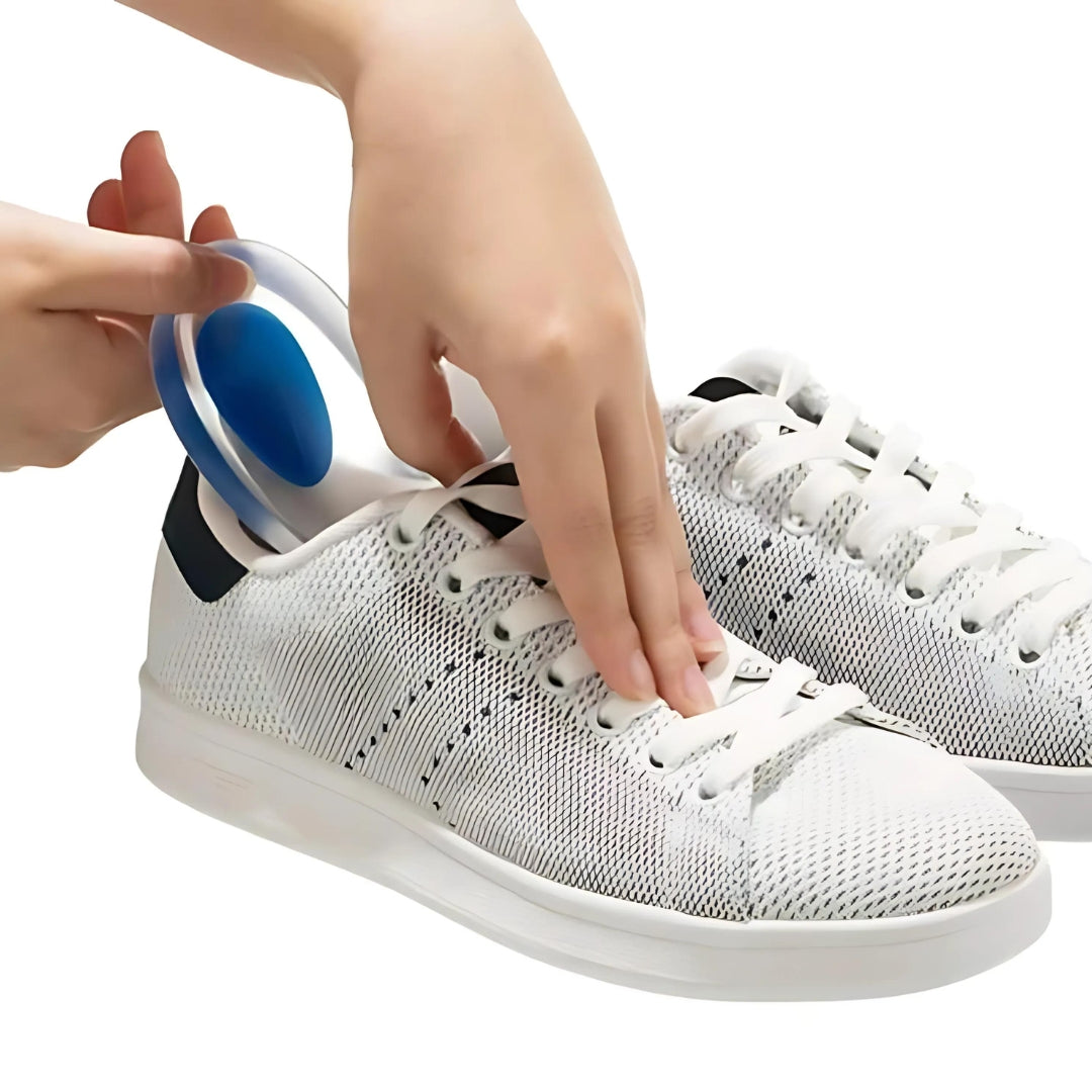 The advanced gel material absorbs shock, significantly reducing stress on the heel—particularly during high-impact activities such as running or walking, for enhanced comfort and protection.