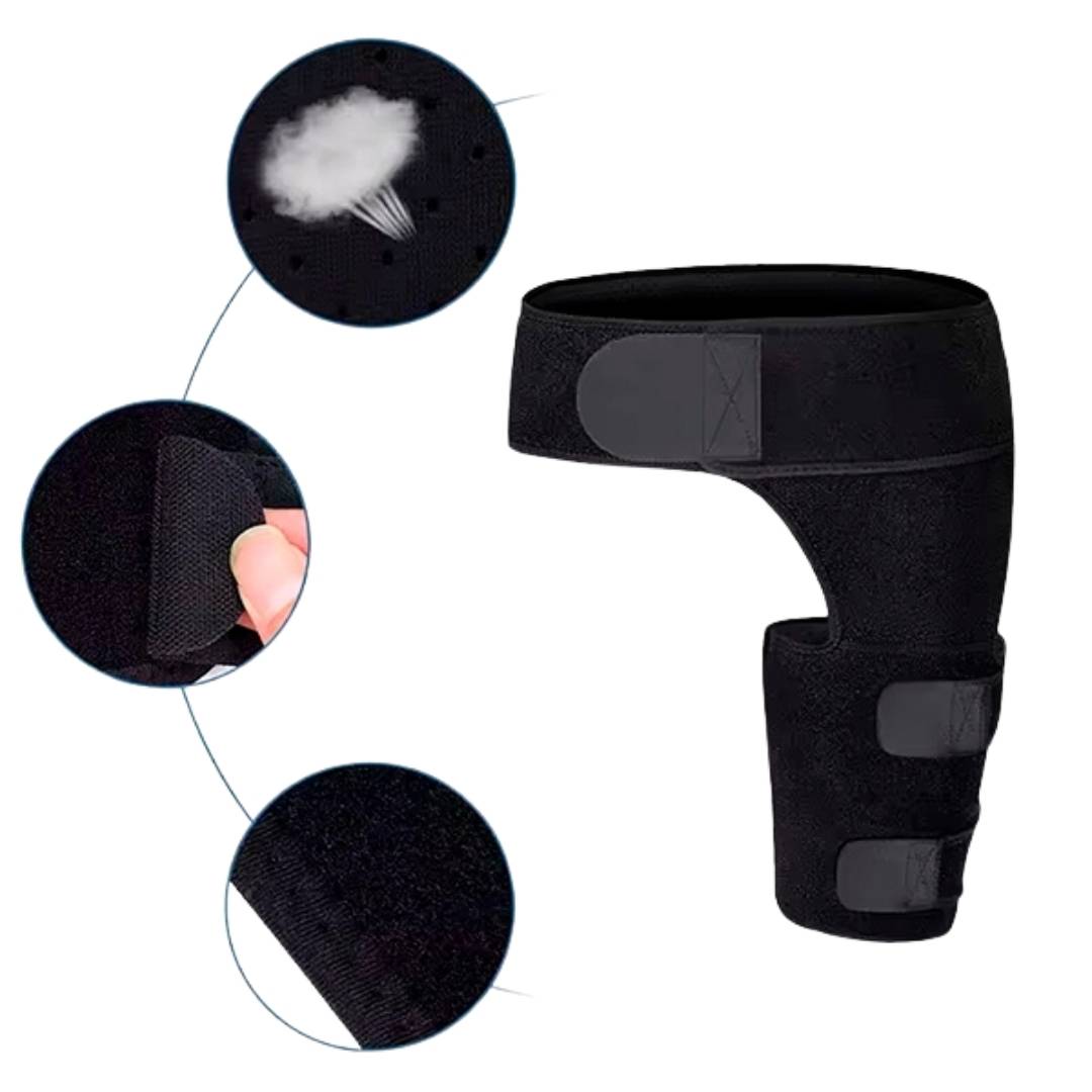 Our FlexiRelief Hip Brace stabilises the hip and thigh with adjustable Velcro straps, reducing strain on muscles and joints for secure, customised support.