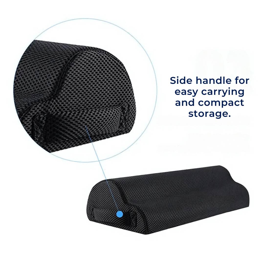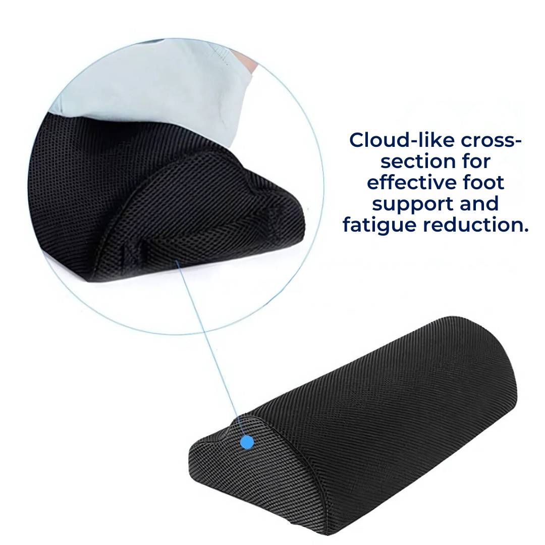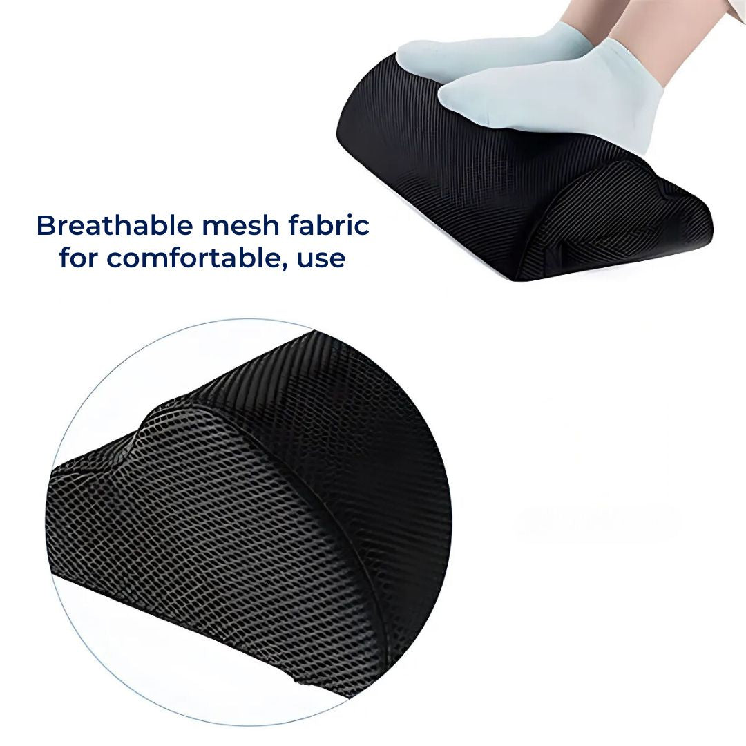 Crafted with breathable nylon mesh and high-density memory foam, our ErgoLift Foot Rest Cushion ensures lasting support, moulds to your feet, and remains easy to clean for long-term use.