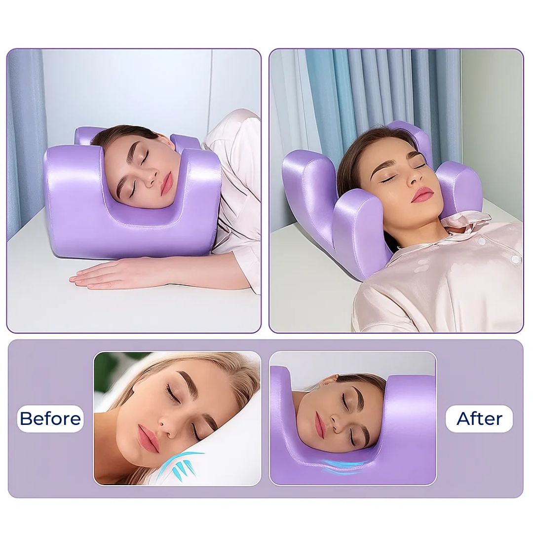Yes, it's ideal for post-treatment recovery. The contoured shape avoids pressure on delicate areas, helping to protect results from facials, fillers, or surgery while you heal overnight.