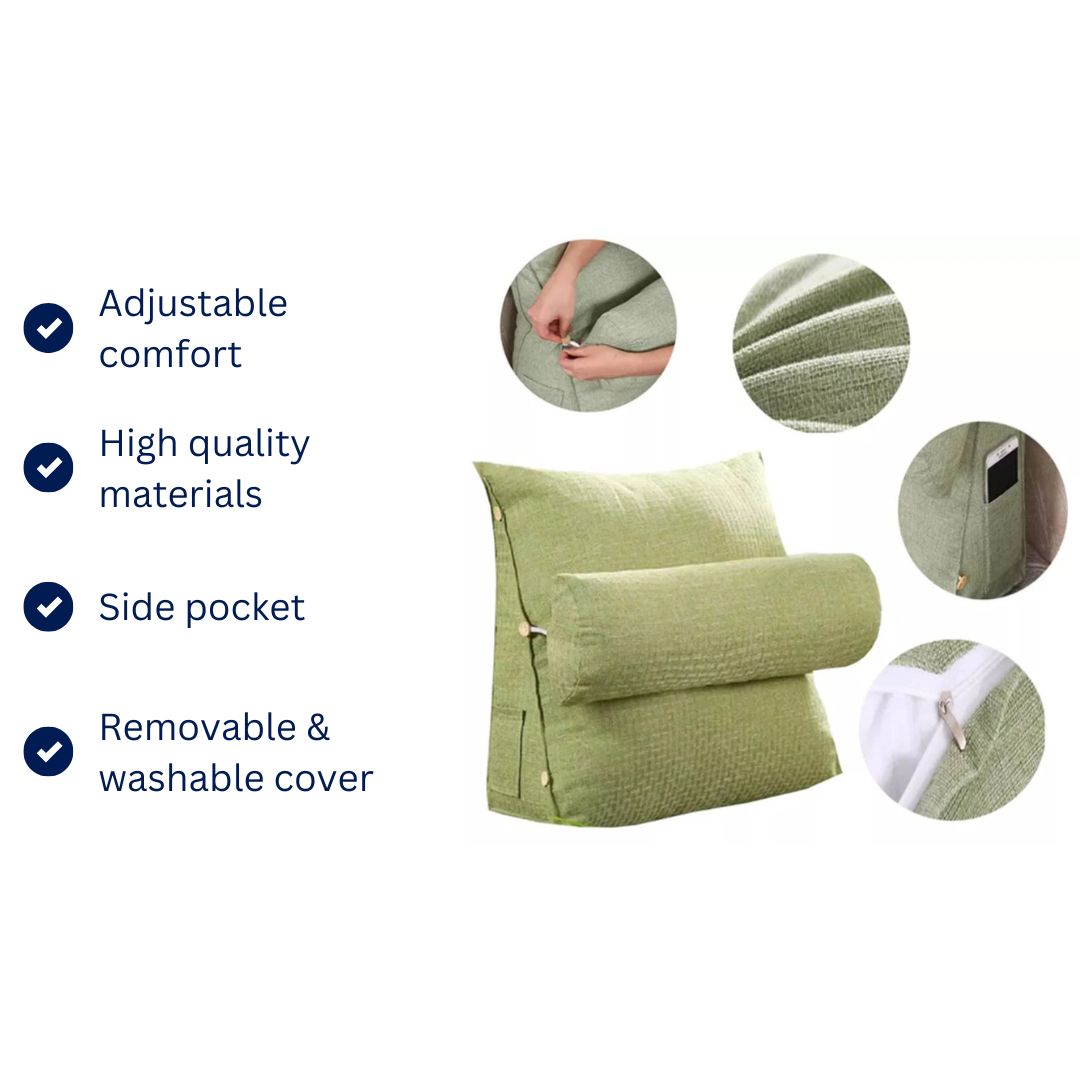Our LoungeEase Backrest Pillow features a detachable neck roll for customisable support and a cotton linen cover for a soft, skin-friendly touch. With a machine-washable cover and resilient filling, it is easy to maintain. Ideal for reading, watching TV, or gaming, this versatile pillow provides superior comfort, supports proper posture, and alleviates back pain, making it perfect for the elderly or anyone seeking relaxation.